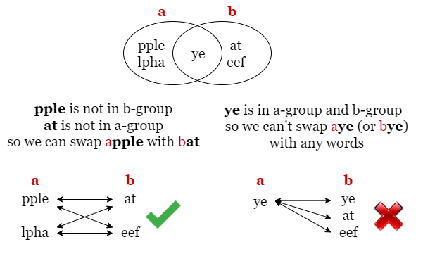 - 두 앞 글자의 나머지 부분들이 1개라도 서로 겹치지 않으면 각각의 크기를 곱해줌