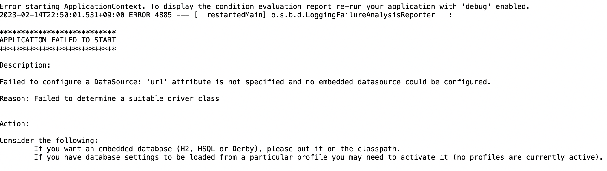 [Spring] 초기 실행 - Failed to configure a DataSource 본문