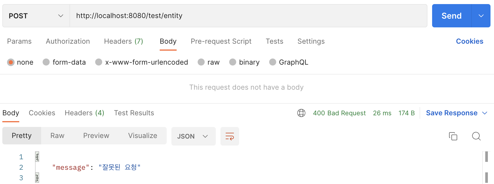 request Body 없이 요청한 경우 → 잘못된 요청, 400 Bad Request