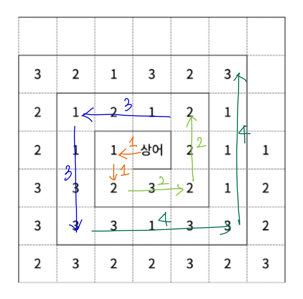 - 달팽이 규칙으로 Queue값 map에 넣기