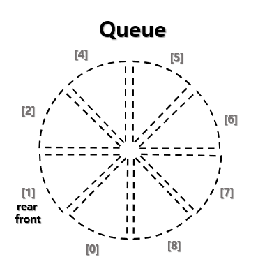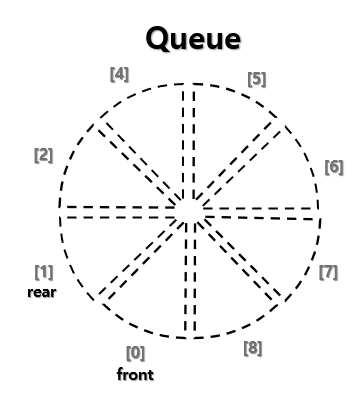 큐에서는 front에서 삭제, rear에서 삽입을 담당한다
