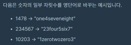 코딩테스트 연습 - 숫자 문자열과 영단어