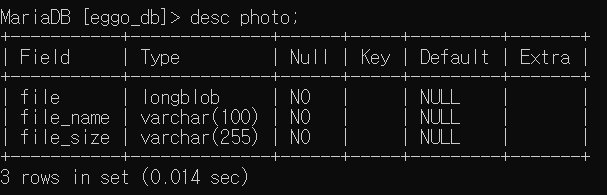 따라서 데이터베이스에 저장되는 부분도 BLOB로 설정해야 한다