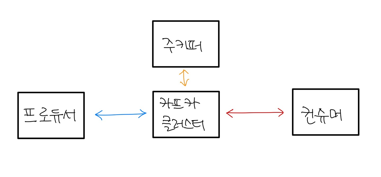 - 브로커(Broker), 주키퍼(Zookeeper), 토픽(Topic), 파티션(Partition), 리더&팔로워 로 구성